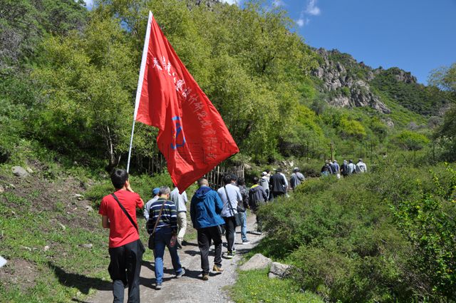早上7:30,提前安排好的6輛景區(qū)大巴車準(zhǔn)時(shí)等候在公司大門口,公司全體黨員和員工按照指定的車號(hào)順序上車,一路上,飛馳的車輪穿碧綠的田野、過嶄新的城鎮(zhèn)、越蜿蜒的山道,載著每個(gè)員工輕松和歡愉的心情奔向目的地。近3個(gè)小時(shí)的顛簸和期待,6輛大巴車終于于10時(shí)許陸續(xù)抵達(dá)察汗河景區(qū)。一下車,公司黨委書記沈波立,公司副總經(jīng)理、工會(huì)主席鄒繼青,公司黨辦主任宋景娥迅速集中全體人員。接著,沈波立書記在現(xiàn)場簡單介紹了徒步活動(dòng)中注意的安全事項(xiàng)及午餐安排等其他事宜,隨著書記的一聲“徒步活動(dòng)現(xiàn)在開始”的指令,公司鮮艷的“LOGO”旗幟引領(lǐng)著全體員工向察汗河景區(qū)深山峽谷挺近。