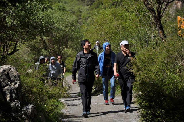 剛開始徒步時(shí),大家還是以隊(duì)為單位排列行走,走著走著,因山勢(shì)越來越陡峭,隊(duì)列就慢慢拉開了距離,隨之不斷變換出組合的多樣性。站在一高處,俯瞰山下,逶迤的羊腸山路上,零星點(diǎn)綴著三三兩兩的紅女藍(lán)男,給這片幽靜而清新的山林增添了幾抹運(yùn)動(dòng)的色彩。沿途累了,大家稍歇息片刻,緊接著繼續(xù)往上攀爬。山路一直是沿著察汗河水流的方向逆行而上,越往上走,路越難行,甚至有的路被荊棘叢生的植物遮掩,讓你不得不停下來仔細(xì)辨析路的方向。耐力和毅力是保證到達(dá)察汗河瀑布終點(diǎn)的能量支撐,往返約7公里的路程,考驗(yàn)著每一位員工的自信力和堅(jiān)持力。黨員同志們更是發(fā)揚(yáng)團(tuán)隊(duì)的凝聚力,大家相互勉勵(lì),不畏艱辛,以一個(gè)帶多個(gè),最終用以付出的汗水收獲了終點(diǎn)的喜悅。站在終點(diǎn)的制高點(diǎn),大家一起拍照,一起狂歡,一起感受瀑布的飛花四濺,一起領(lǐng)略察汗河的詩情畫意。