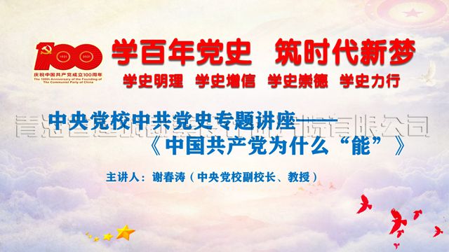 2021年6月11日,公司黨委組織中層以上領(lǐng)導(dǎo)、全體黨員及入黨積極分子在公司六樓會(huì)議室觀看“中央黨校中共黨史網(wǎng)絡(luò)專題講座——《中國(guó)共產(chǎn)黨為什么‘能’》”,主講人:中央黨校(國(guó)家行政學(xué)院)副校(院)長(zhǎng) 、教授——謝春濤。這是繼4月20日公司黨委組織觀看中共黨史專題講座——《建立新中國(guó)的構(gòu)想及其實(shí)踐》之后的第二講。