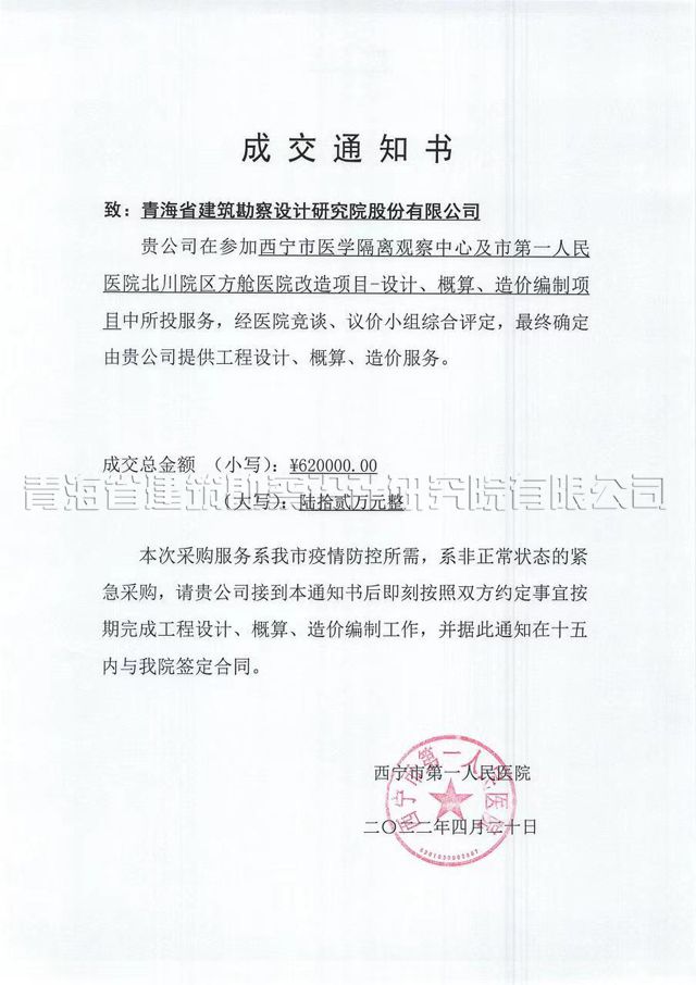 疫情肆虐,速建方艙。攜手抗疫,省院擔(dān)當(dāng)。420日,在西寧市鞏固疫情防控成果的關(guān)鍵時刻,傳來中標(biāo)喜訊:青海省院憑借綜合技術(shù)實力,中標(biāo)“西寧市醫(yī)學(xué)隔離觀察中心及市第一人民醫(yī)院北川園區(qū)方艙醫(yī)院改造項目——設(shè)計、概算、造價編制項目”。